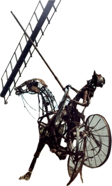 Verzwickte Technik: Don Quijote im Kampf mit der Windmühle